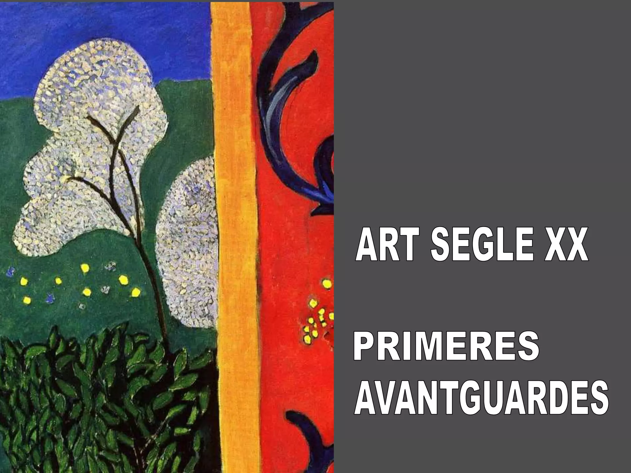 En la presentació es descriuen els trets més significatius que van caracteritzar les primeres avantguardes del segle XX.