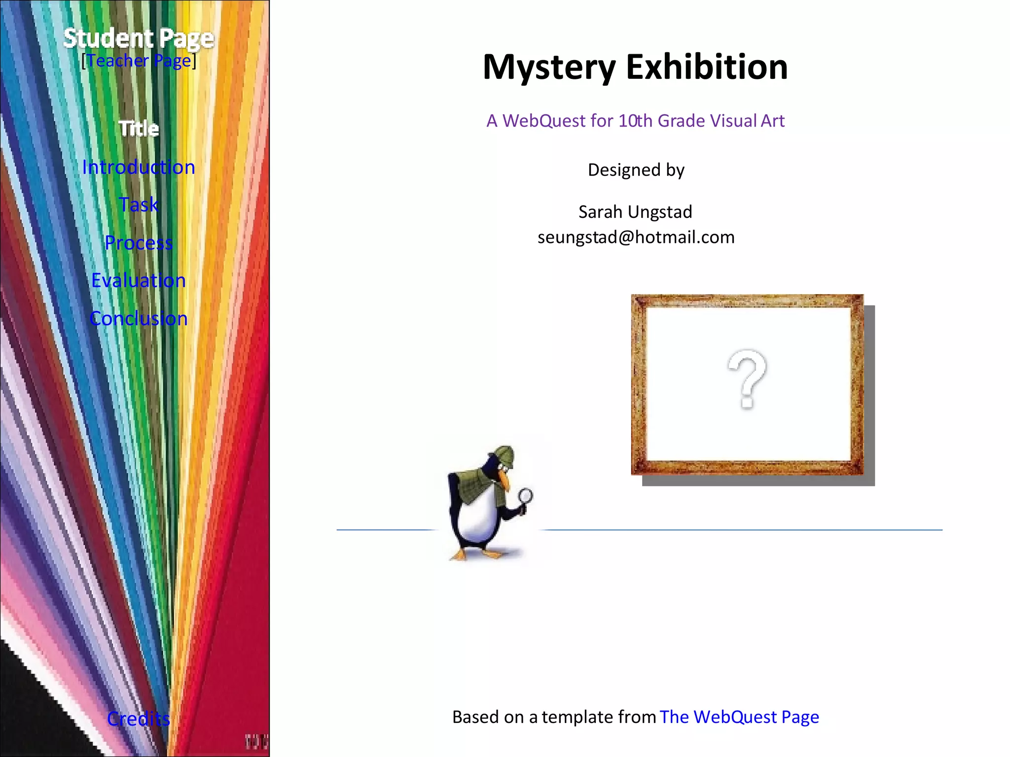 This document provides instructions for a lesson plan where students research a modern American artist based on clues provided. Working in groups, students determine the artist, research their life and work, and create a PowerPoint presentation. The goal is for students to learn about the artist and their cultural context. Assessment is based on the accuracy, relevance, organization, and group collaboration in the presentations.