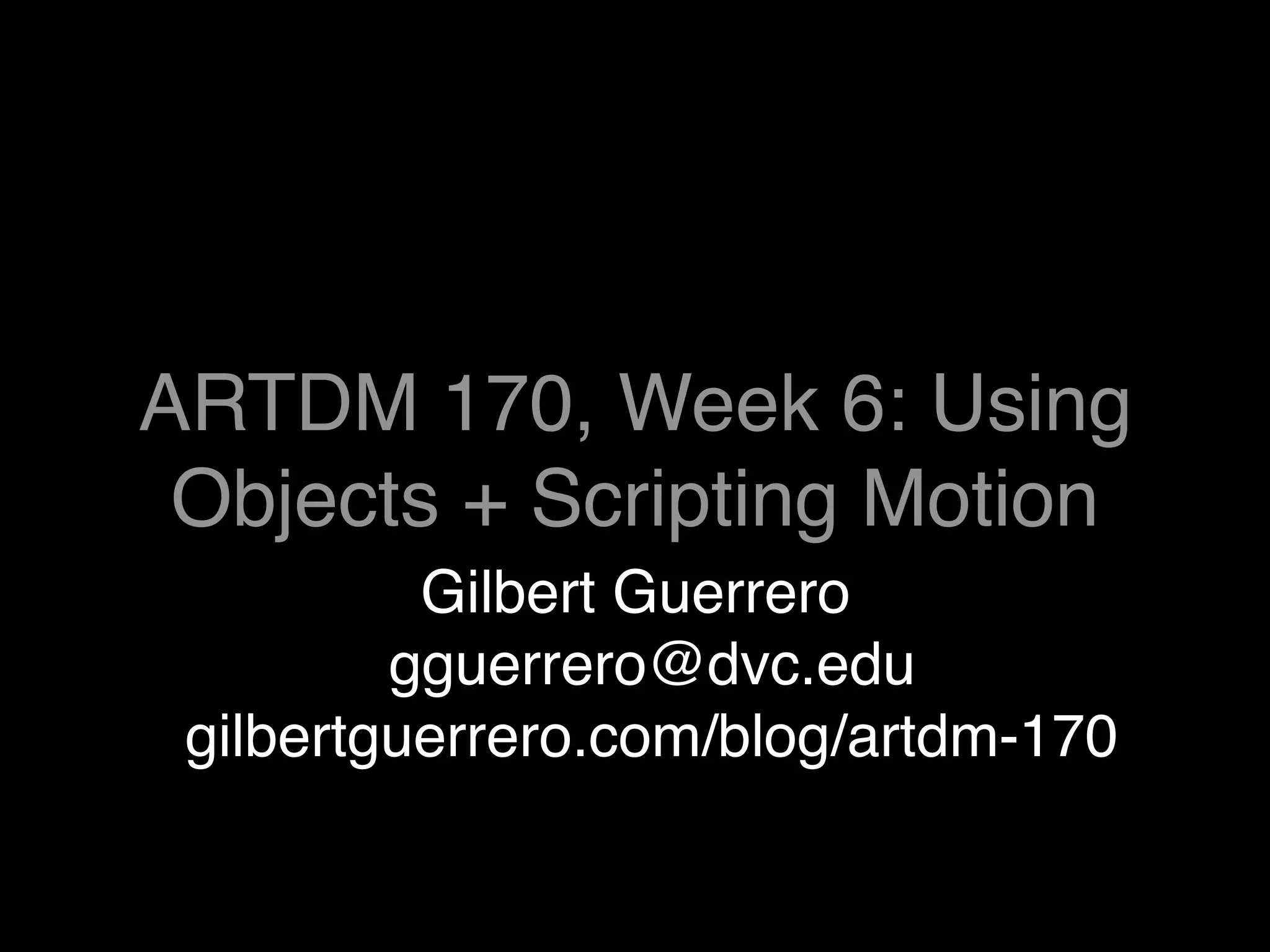 This document provides an overview of using objects and scripting motion in Adobe Flash. It discusses creating ActionScript classes, placing objects on the stage programmatically and from the library, and drawing objects like circles with code. It then covers moving objects by updating x and y coordinates, using event listeners like ENTER_FRAME to trigger movement, bouncing objects off edges by changing movement direction, and detecting edge collisions more precisely using an object's width and height. The homework assignment is to read a chapter on game elements and create a Flash file with an object moving across the stage via ActionScript.