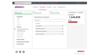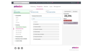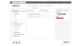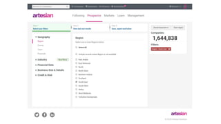 The document outlines Artesian's B2B conference focused on sales and relationship management, featuring various sessions on customer success, innovation, and future trends. It highlights impressive statistics such as 800,000 companies and 2 trillion searches per week alongside testimonials about the effectiveness of the Artesian service in enhancing user engagement and decision-making processes. Key topics include the integration of innovative solutions in risk management, customer retention, and leveraging data for competitive advantage.