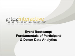 The document details a webinar on participant and donor data analytics hosted by Event 360, emphasizing the importance of using data to enhance fundraising decisions. It outlines key metrics, the significance of segmentation, and strategies to identify high-performing donor segments. Additionally, the presentation covers upcoming webinars and encourages engagement through social media.