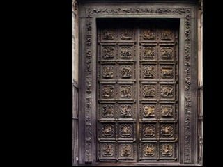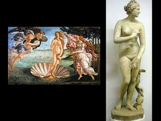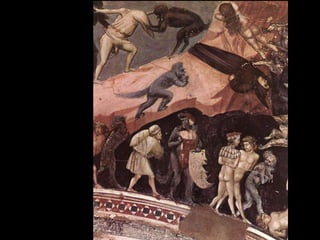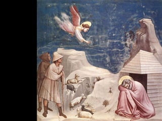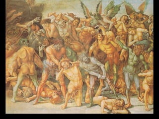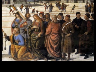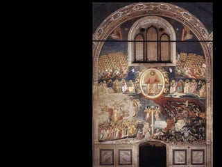 The document discusses the impact of the Black Death pandemic in Europe in the 14th century. It killed 30-60% of the population, reducing numbers from 450 million to between 350-375 million by 1400. This labor shortage improved conditions for peasants and marked the rise of the middle class. The Renaissance period that followed was characterized by a renewed interest in classical art and literature. Major artists like Giotto, Donatello, Botticelli, Raphael, Michelangelo, and Leonardo da Vinci emerged and pioneered new styles and techniques that defined the era.