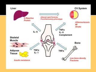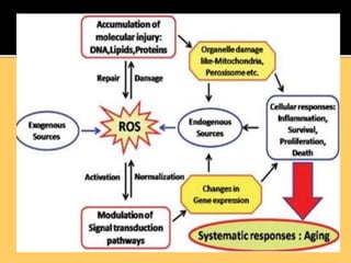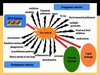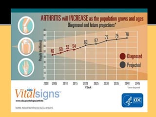 The document discusses the significance of herbal medicine in global healthcare, highlighting that around 80% of the African population uses traditional herbal remedies, which are linked to a market nearing US $60 billion. It also elaborates on various types of arthritis, including rheumatoid arthritis and osteoarthritis, emphasizing their causes, symptoms, and treatment options. Moreover, the document outlines the role of free radicals and oxidative stress in the pathology of rheumatoid arthritis, as well as the prevalence of arthritis in the US population.