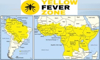 Arthropods transmit many viral, bacterial, and parasitic diseases including yellow fever, dengue fever, rift valley fever, and viral encephalitis. Mosquitoes are the main disease vectors, transmitting pathogens during blood feeding. Common symptoms include fever, bleeding, liver damage, and neurological involvement. Diagnosis involves travel history, serology, and PCR or culture. Prevention focuses on controlling mosquito vectors through environmental management and insecticides, as well as vaccination for diseases like yellow fever.