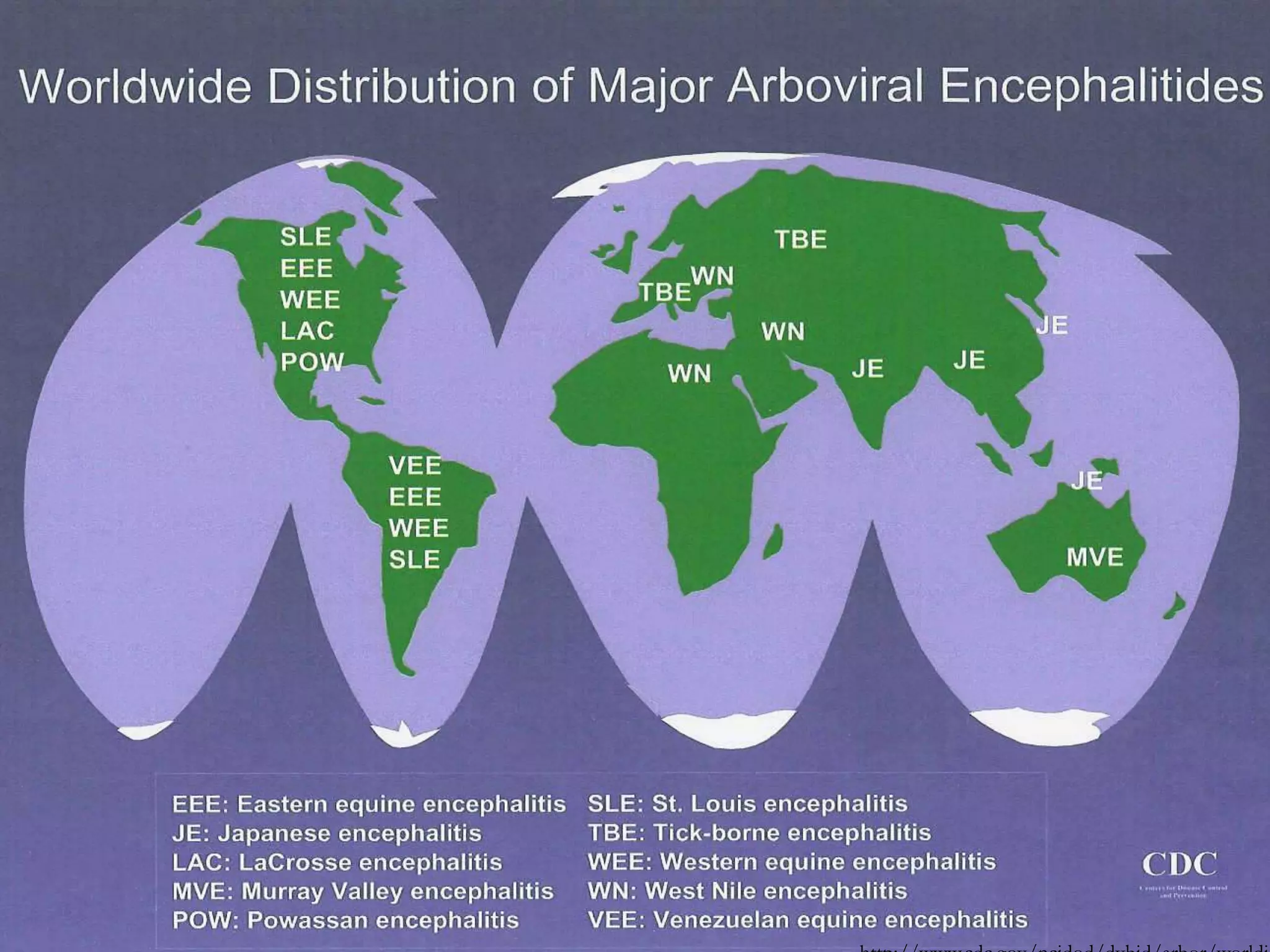 2. The virus is maintained in a transmission cycle between mosquitoes, birds, and pigs. Most human infections are asymptomatic but it can cause a life-threatening encephalitis.
