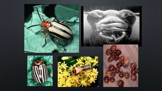 This document classifies arthropods into three subphyla: Trilobitomorpha, Chelicerata, and Mandibulata. Trilobites were diverse marine invertebrates that lived 500-250 million years ago. Chelicerates include spiders, scorpions, ticks, and sea spiders and have two body segments, pedipalps for holding prey, and book lungs. Mandibulatans include insects, centipedes, millipedes, and crustaceans and have mandibles for chewing and three body segments in insects.