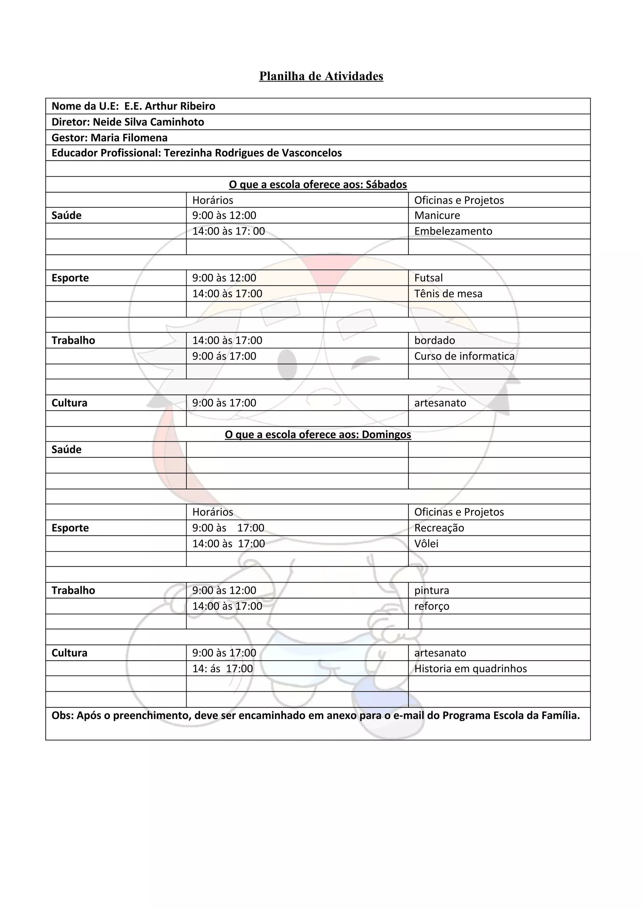 Grande de Horários das Atividades do PEF DOCX
