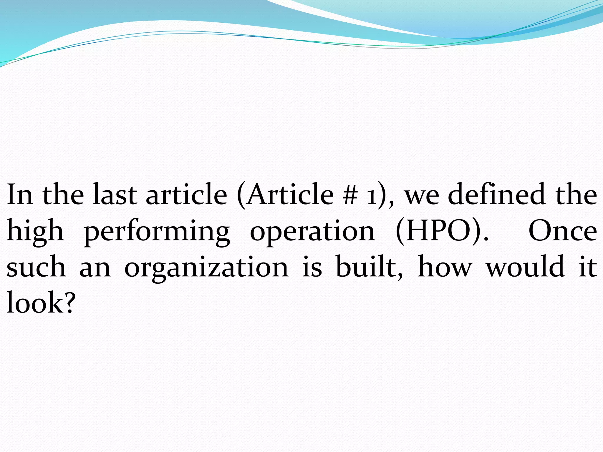 The document outlines 5 key characteristics of a high performing organization (HPO): 1) using well-defined systems and processes, 2) creating a culture of continuous improvement, 3) operating with minimum/optimal costs, 4) fostering accountability and discipline, and 5) employing methodology and models. It notes that once an organization exhibits these traits, it will evolve and survive long after its current leadership, as Starbucks CEO Howard Schultz stated about his own company. The next article will discuss why many organizations struggle to build an HPO.