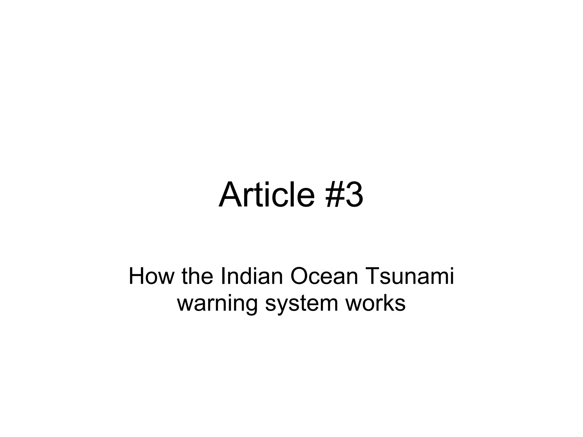 The Indian Ocean Tsunami warning system detects potential tsunamis through a network of seismographic and ocean monitoring stations across the Indian Ocean. When an earthquake occurs, data is transmitted to warning centers in Hawaii and Japan to analyze and issue watches or warnings. National warning agencies are meant to communicate these to other countries, though coordination could be improved. At the local level, organizations work to educate communities on tsunami safety and how to respond to warnings.