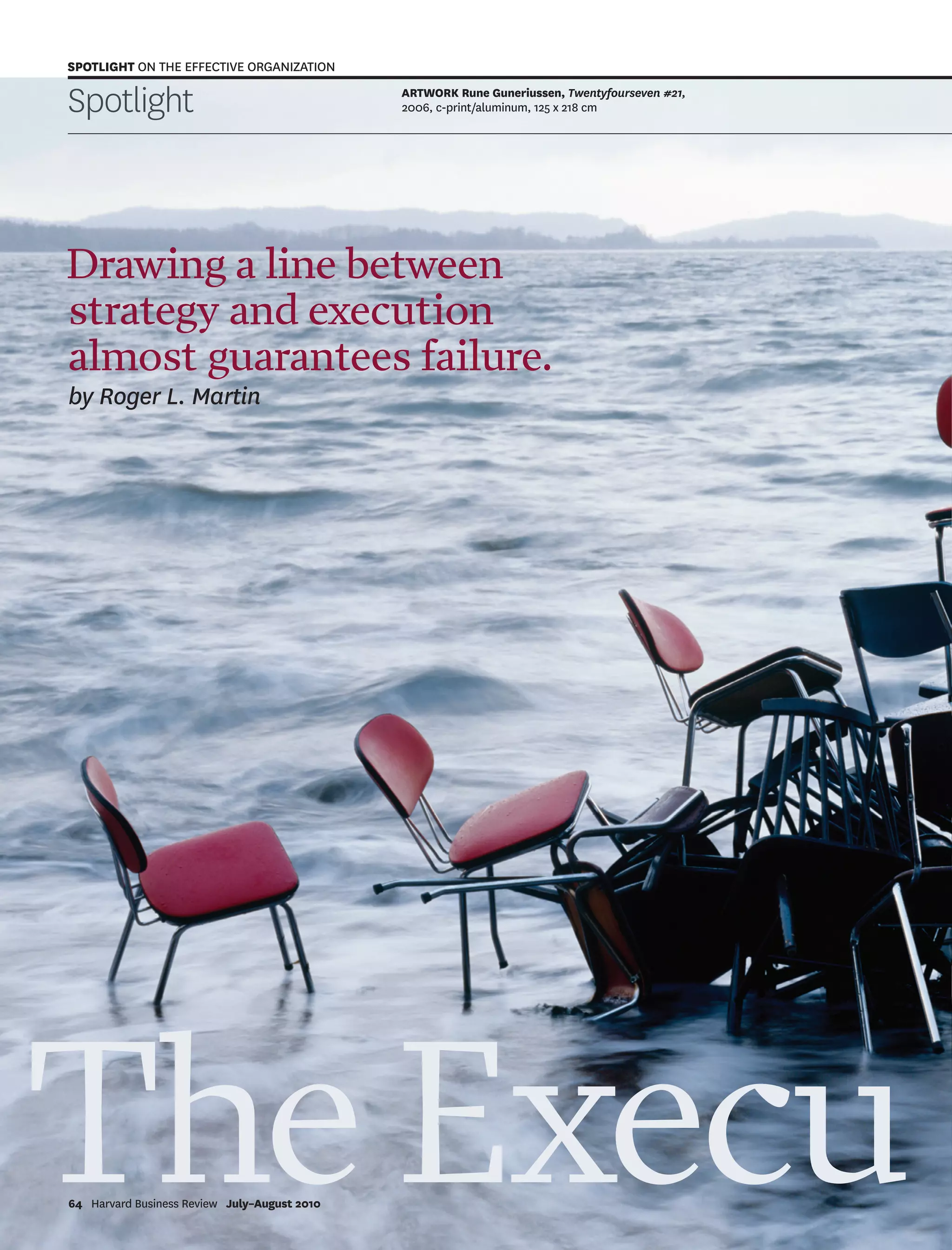1) The article argues that the common view that strategy and execution are distinct, with strategy being formulated at the top and then executed below, is flawed.