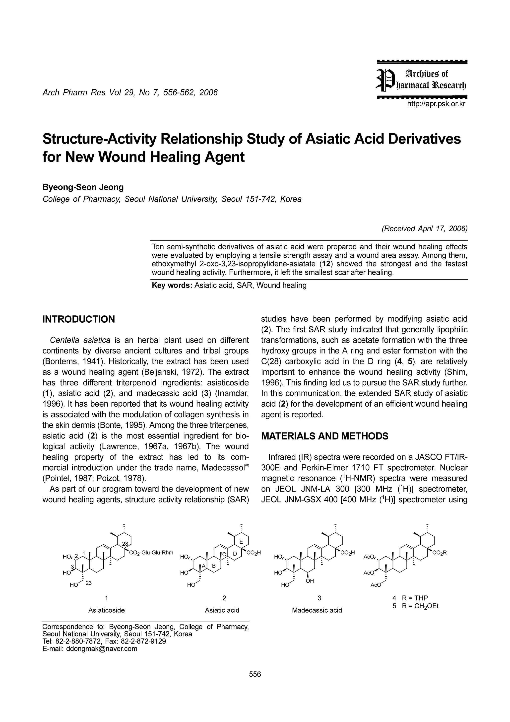 moc.revan@kamgnodd :liam-E 9219-278-2-28 :xaF ,2787-088-2-28 :leT aeroK ,247-151 luoeS ,ytisrevinU lanoitaN luoeS ,ycamrahP fo egelloC ,gnoeJ noeS-gnoeyB :ot ecnednopserroC gnisu retemortceps ])H ( zHM 004[ 004 XSG-MNJ LOEJ 1 )RAS( pihsnoitaler ytivitca erutcurts ,stnega gnilaeh dnuow ,retemortceps ])H ( zHM 003[ 003 AL-MNJ LOEJ no 1 wen fo tnempoleved eht drawot margorp ruo fo trap sA derusaem erew artceps )RMN-H ( ecnanoser citengam 1 .)8791 ,tozioP ;7891 ,letnioP( raelcuN .retemortceps TF 0171 remlE-nikreP dna E003 ®lossacedaM ,eman edart eht rednu noitcudortni laicrem -RI/TF OCSAJ a no dedrocer erew artceps )RI( derarfnI -moc sti ot del sah tcartxe eht fo ytreporp gnilaeh dnuow ehT .)b7691 ,a7691 ,ecnerwaL( ytivitca lacigol SDOHTEM DNA SLAIRETAM -oib rof tneidergni laitnesse tsom eht si )2( dica citaisa ,senepretirt eerht eht gnomA .)5991 ,etnoB( simred niks eht .detroper si tnega ni sisehtnys negalloc fo noitaludom eht htiw detaicossa si gnilaeh dnuow tneiciffe na fo tnempoleved eht rof )2( dica ytivitca gnilaeh dnuow sti taht detroper neeb sah tI .)6991 citaisa fo yduts RAS dednetxe eht ,noitacinummoc siht nI ,radmanI( )3( dica cissacedam dna ,)2( dica citaisa ,)1( .rehtruf yduts RAS eht eusrup ot su del gnidnif sihT .)6991 edisocitaisa :stneidergni dionepretirt tnereffid eerht sah ,mihS( ytivitca gnilaeh dnuow eht ecnahne ot tnatropmi tcartxe ehT .)2791 ,iksnajleB( tnega gnilaeh dnuow a sa ylevitaler era ,)5 ,4( gnir D eht ni dica cilyxobrac )82(C desu neeb sah tcartxe eht ,yllacirotsiH .)1491 ,smetnoB( eht htiw noitamrof retse dna gnir A eht ni spuorg yxordyh spuorg labirt dna serutluc tneicna esrevid yb stnenitnoc eerht eht htiw noitamrof etateca sa hcus ,snoitamrofsnart tnereffid no desu tnalp labreh na si acitaisa alletneC cilihpopil yllareneg taht detacidni yduts RAS tsrif ehT .)2( dica citaisa gniyfidom yb demrofrep neeb evah seiduts NOITCUDORTNI gnilaeh dnuoW ,RAS ,dica citaisA :sdrow yeK .gnilaeh retfa racs tsellams eht tfel ti ,eromrehtruF .ytivitca gnilaeh dnuow tsetsaf eht dna tsegnorts eht dewohs )21( etataisa-enedilyporposi-32,3-oxo-2 lyhtemyxohte ,meht gnomA .yassa aera dnuow a dna yassa htgnerts elisnet a gniyolpme yb detaulave erew stceffe gnilaeh dnuow rieht dna deraperp erew dica citaisa fo sevitavired citehtnys-imes neT )6002 ,71 lirpA devieceR( aeroK ,247-151 luoeS ,ytisrevinU lanoitaN luoeS ,ycamrahP fo egelloC gnoeJ noeS-gnoeyB tnegA gnilaeH dnuoW weN rof sevitavireD dicA citaisA fo ydutS pihsnoitaleR ytivitcA-erutcurtS rk.ro.ksp.rpa//:ptth 6002 ,265-655 ,7 oN ,92 loV seR mrahP hcrA
