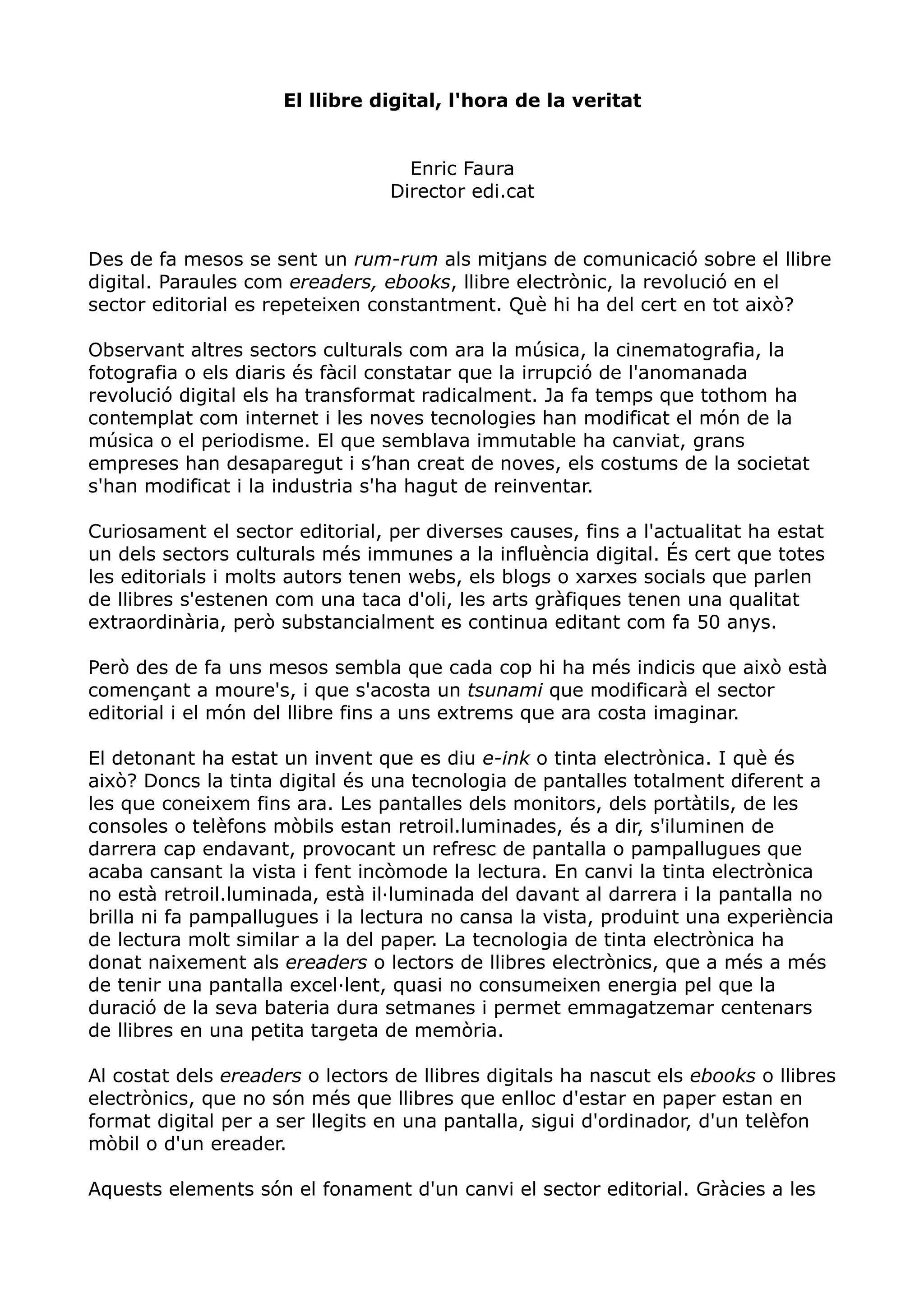 absoluts. Les editorials estan adaptant els seus fons al format ebook, es creen