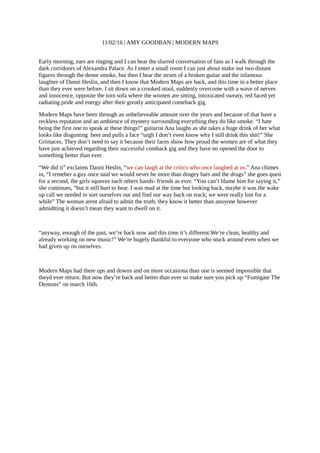 Modern Maps have made a successful comeback after going through difficult times and losing their way for a while. The band members are proud of their comeback gig and feel they are now in a better place. While they don't want to dwell on the past, guitarist Ana admits they were really lost for a period and that a critic's harsh words were a wake-up call they needed to get back on track. Modern Maps are now clean, healthy, and working on new music as they've opened the door to something better than ever before.