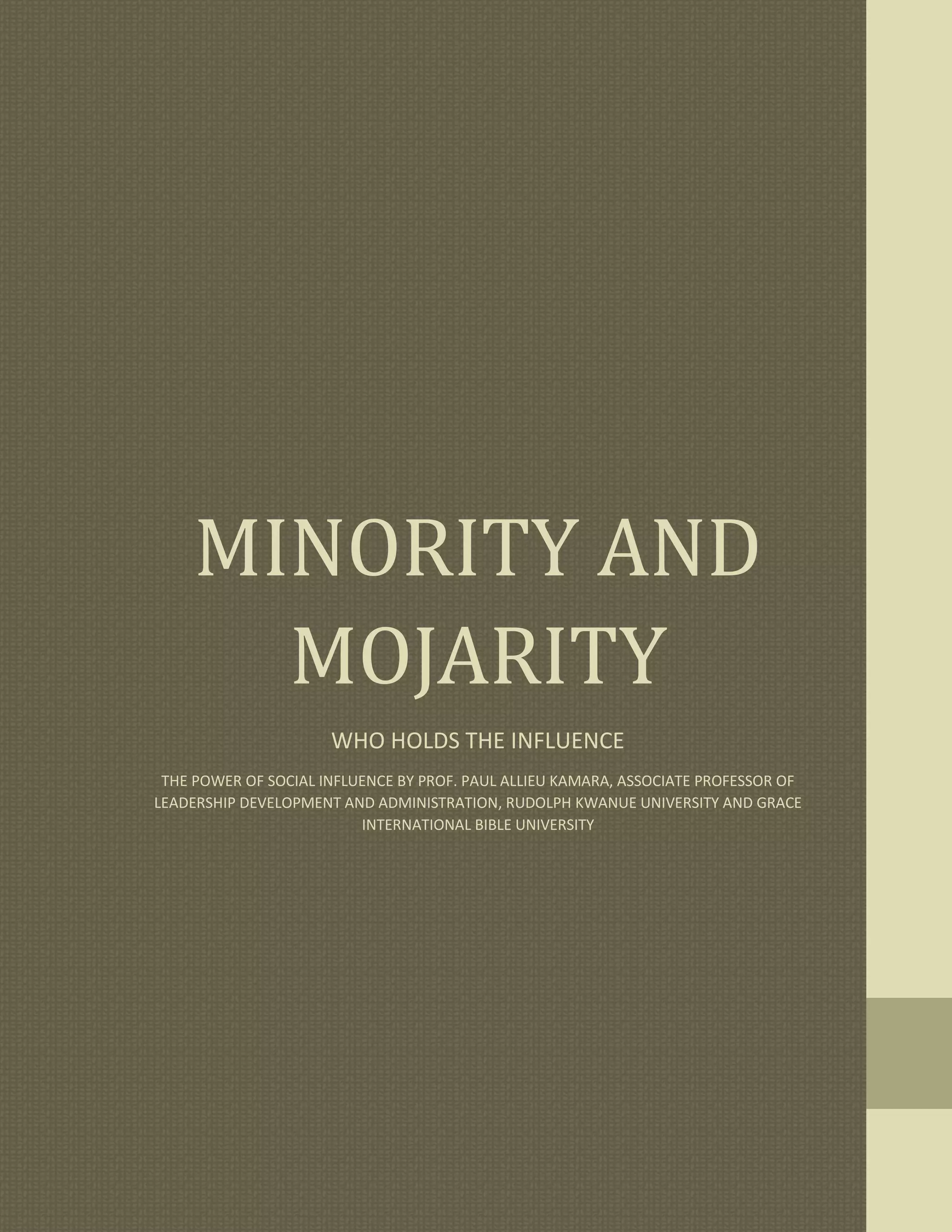 This document discusses social influence and the dynamics between minorities and majorities. It covers research on conformity, obedience, and minority influence. Some key points: