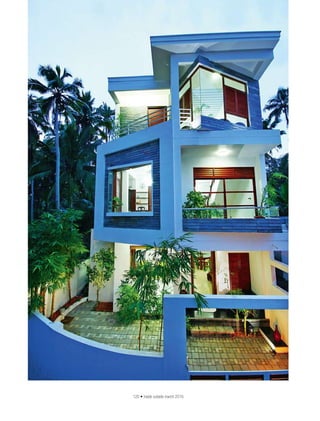 The document summarizes an architectural project to design a home within a small 2.5 cent plot of land in Trivandrum, India. The architects Abul Quassim and N. Radhakrishnan worked under strict budget constraints of 30 lakhs (3 million rupees) and utilized innovative design techniques to maximize the usage of the small space. They removed unnecessary walls and circulation areas, used diagonal lines to create an impression of more space, and implemented sustainable design elements like a glass pergola with double panes and ventilation. The efficient design proved that thoughtful design can create an efficient and beautiful home even within tight budget and space limitations.
