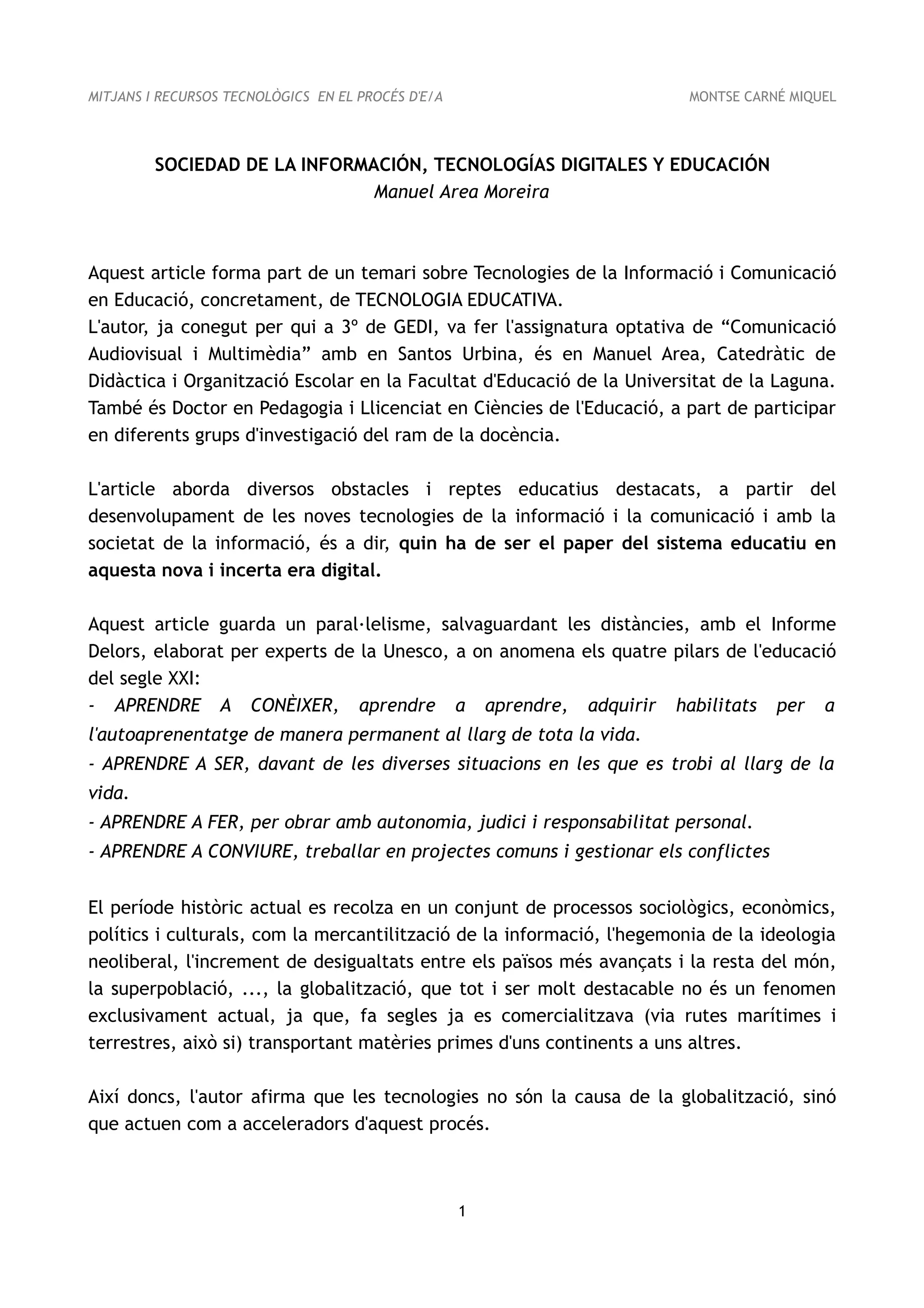 el desenvolupament de la societat de la informació a mig plaç”, ens diu n'Area al final