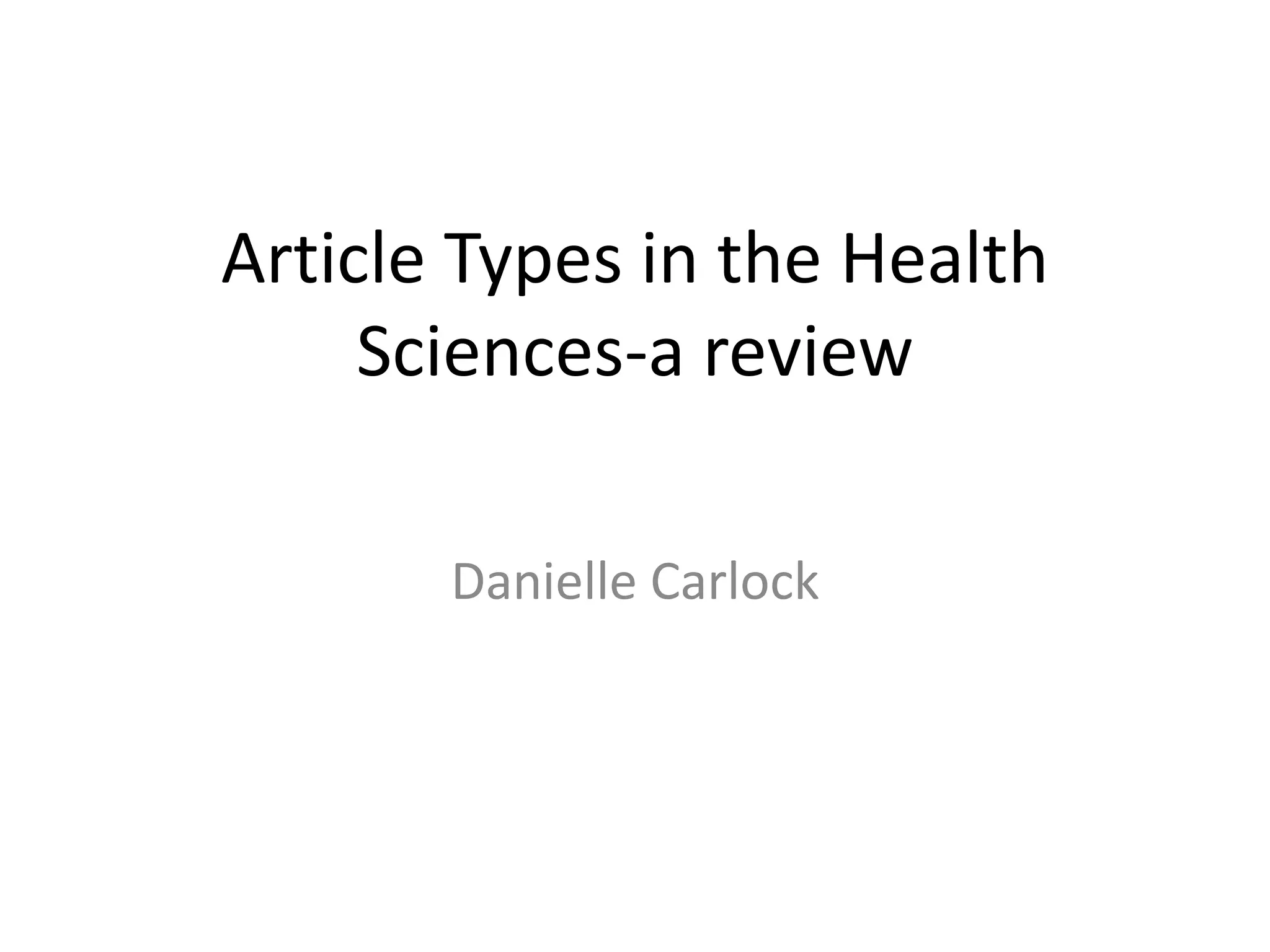 There are several types of articles one may encounter when conducting research in the health sciences. Primary research articles present the findings of original research studies and include the methodology. Review articles provide a critical evaluation of recent research on a topic and come in three forms: literature reviews which summarize existing research; systematic reviews which use a rigorous process to synthesize multiple studies; and meta-analyses which statistically combine the results of several studies. Case studies report on the details of a single patient and aim to explore new avenues for research rather than make broad generalizations. It is important to understand the differences between these article types to identify relevant and high-quality evidence.