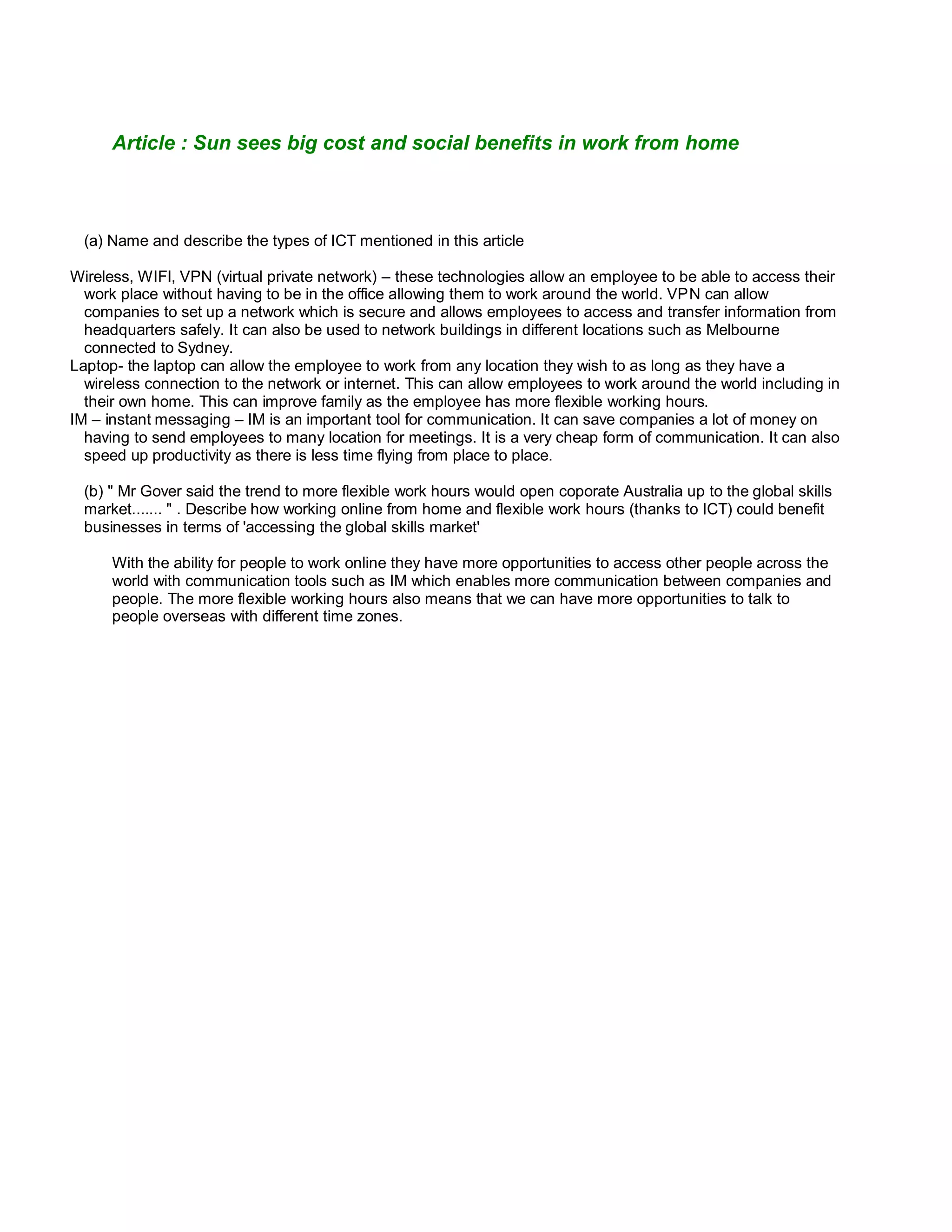 Flexible work arrangements enabled by technologies like VPN, WiFi, and instant messaging allow employees to work remotely. This gives companies access to a global talent pool regardless of location. It also improves work-life balance for employees by providing flexibility. Remote work can reduce business costs and increase productivity by eliminating travel time for meetings which can now be done virtually through online communication tools.