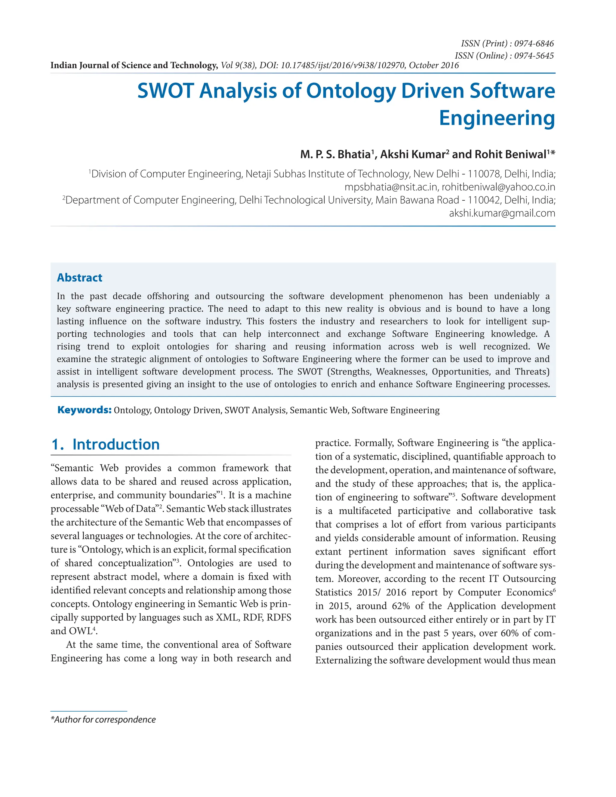 The document presents a SWOT analysis of ontology-driven software engineering, highlighting its strengths, weaknesses, opportunities, and threats. It emphasizes the role of ontologies in enhancing software engineering processes, facilitating consistent information sharing, and supporting intelligent software tools. The study concludes that while there are challenges such as the time-consuming nature of ontology generation and potential legal issues, the integration of semantic web technologies offers significant opportunities for improving software development practices.