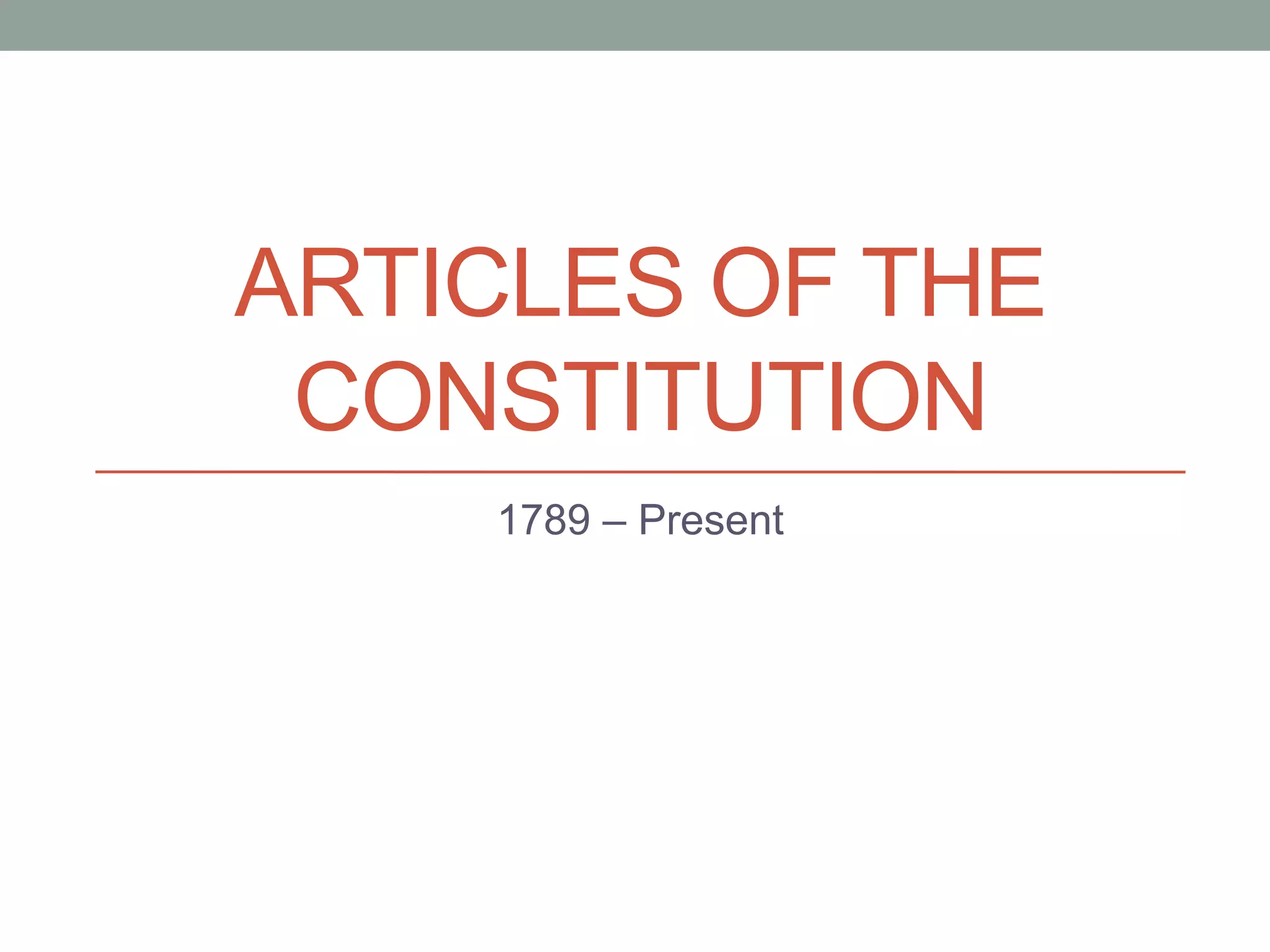 The document summarizes the 7 articles of the US Constitution. Article I establishes the legislative branch and gives powers to Congress. Article II establishes the executive branch and gives powers to the presidency. Article III establishes the judicial branch and the Supreme Court. Article IV describes relations between states and guarantees protections. Article V establishes the process for amending the Constitution. Article VI establishes the Constitution as the supreme law of the land. Article VII describes the ratification process for establishing the Constitution.