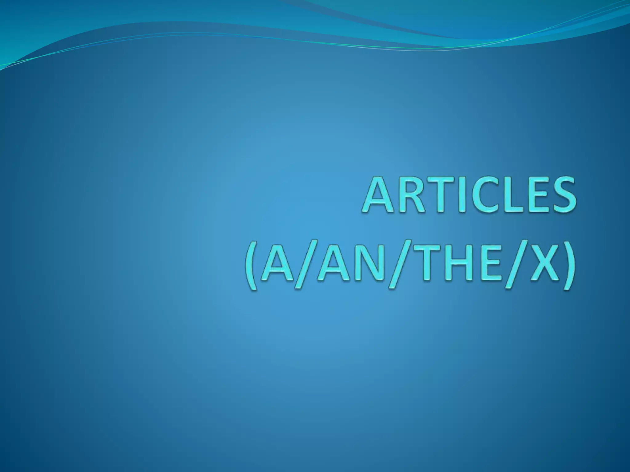 The document provides 15 rules for using articles (a, an, the) correctly with nouns in English. It explains that countable nouns require articles, uncountable nouns usually do not, and some nouns can be both countable and uncountable depending on context. Specific types of nouns like languages, geographical areas, institutions and occupations are also discussed. The document concludes by providing examples and exercises to practice applying the rules.