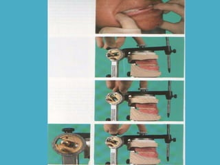 The document discusses dental articulators, which are instruments used to reproduce jaw movements and relationships. It describes the purposes of articulators as holding dental casts in a fixed relationship and simulating jaw movements. Various types of articulators are classified based on their design and ability to stimulate jaw relations, including simple hinge articulators, average value articulators, and adjustable articulators. Face bows are also discussed as devices used to transfer jaw relationships to articulators.