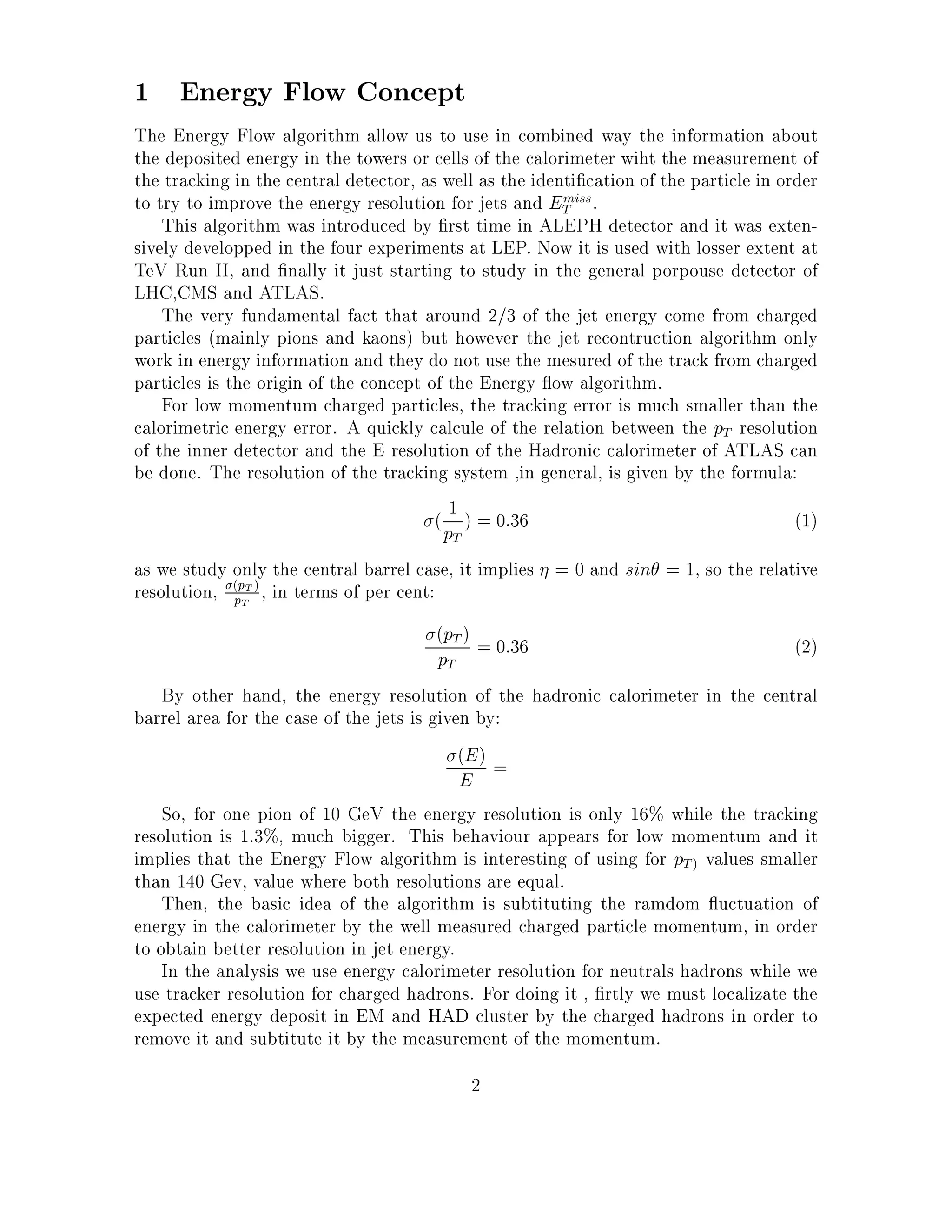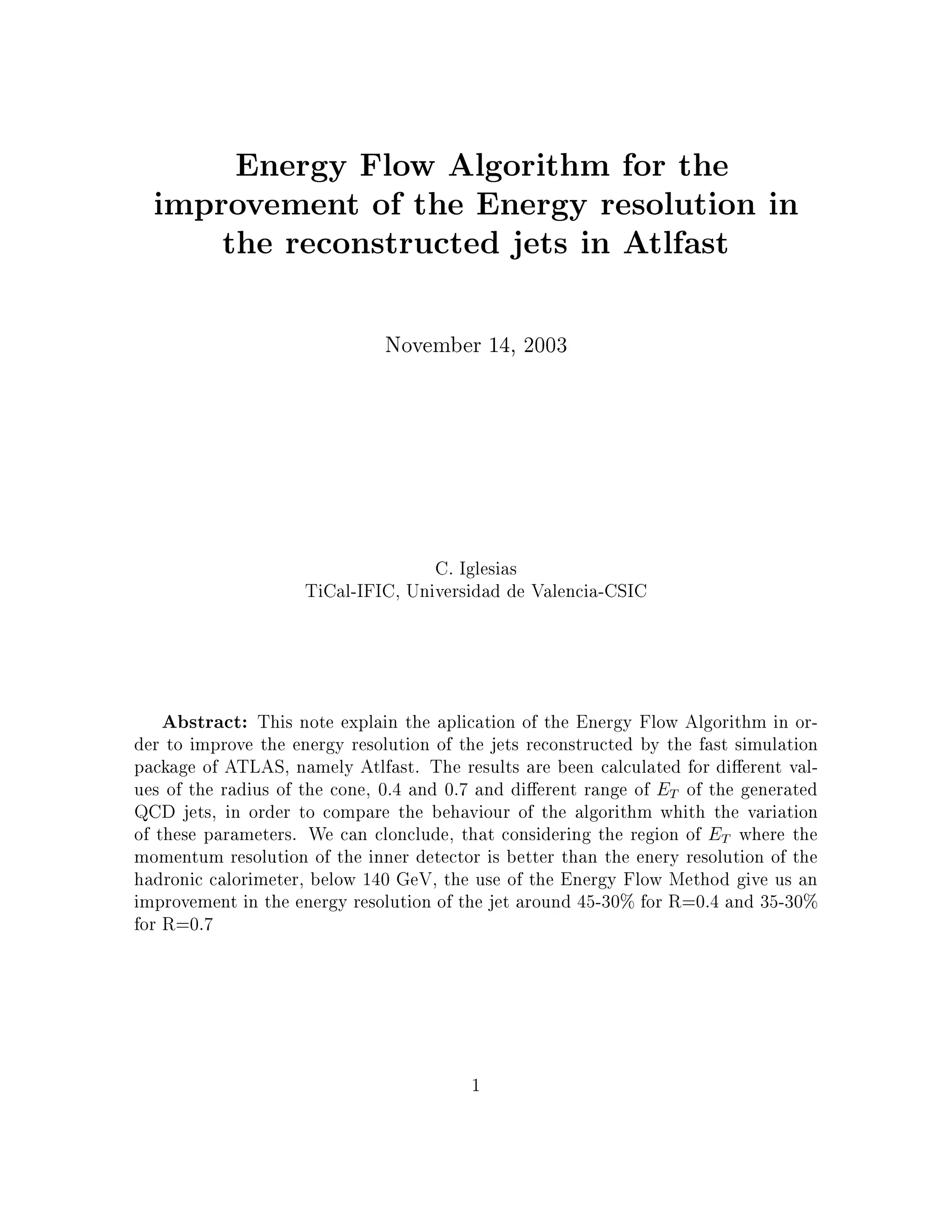 This note wroten by Carmen Iglesias Escudero explains the aplication of the Energy Flow algorithm in order to improve the energy resolution of the jets reconstructe by the fast simulation package of ATLAS namely Atlfast. The results are been calculated for different values of the cone, 0,4 and 0,7 and different range of Et of the generated QCD jets, in order to compare the behaviour of the algorithm whith the variation of these parameters. We can conclude, that considering the region of Et where the momentum resolution of the inner detector is better than the energy resolution of the hadronic calorimeter, below 140 GeV, the use of the Energy Flow Method give us an improvement in the energy resolution of the jet around 45-40% and 35-30% for R=0,7.