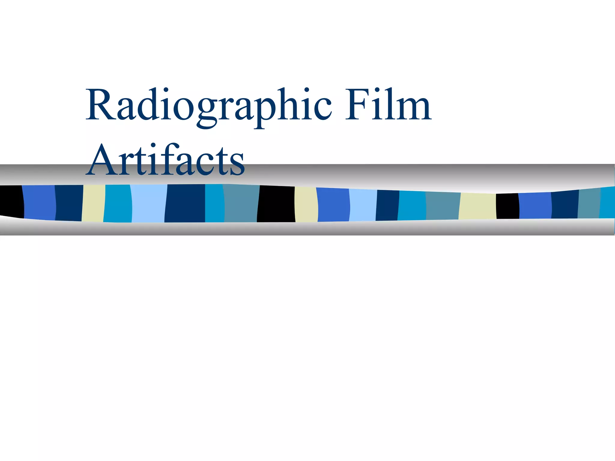 Radiographic films can contain artifacts that interfere with diagnosis. There are three periods when artifacts can occur: during exposure, processing, or handling before processing. Exposure artifacts include poor screen-film contact or grid use, double exposure, and patient motion. Processing artifacts result from issues like dirty rollers, chemical fog, guide shoe or roller marks. Handling and storage artifacts include light or radiation fog from improper safelighting, kink marks from improper handling, and static effects from electron buildup. Artifacts must be minimized to accurately diagnose from radiographic images.