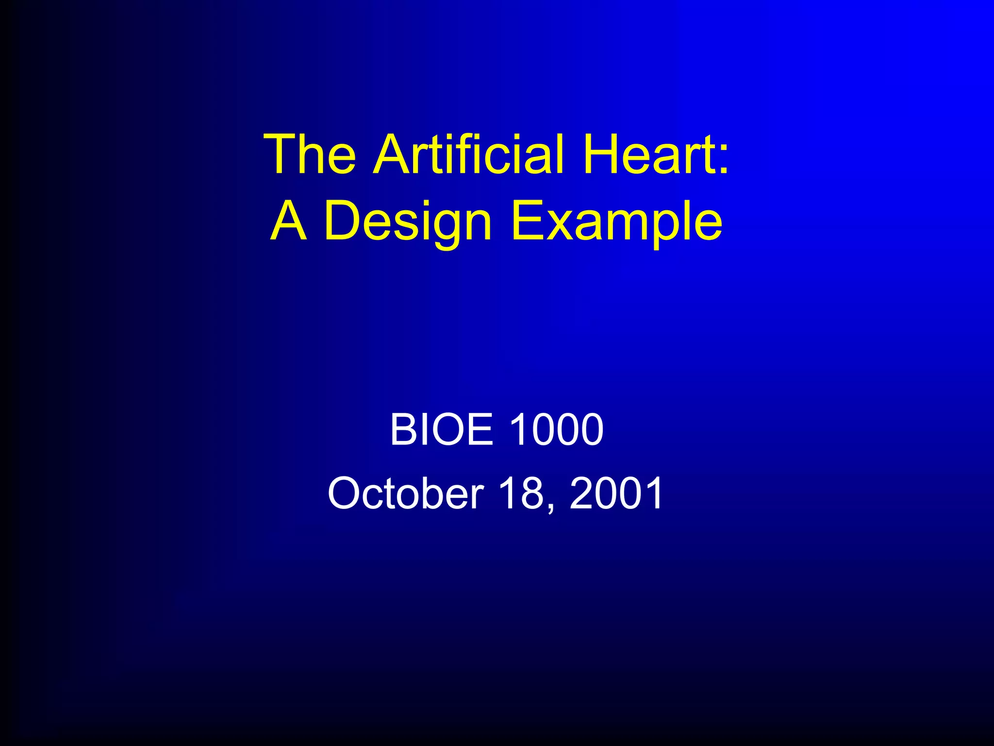The document describes the design of an artificial heart called the AbioCor. It discusses the need for heart substitutes due to the large number of patients needing heart transplants. The AbioCor uses a hydraulic pump powered by an internal battery to pump blood to the lungs and body, mimicking the function of the human heart. Its design aims to meet criteria such as providing adequate blood flow, preventing blood clots and immune responses, and having a self-contained system without external wires.