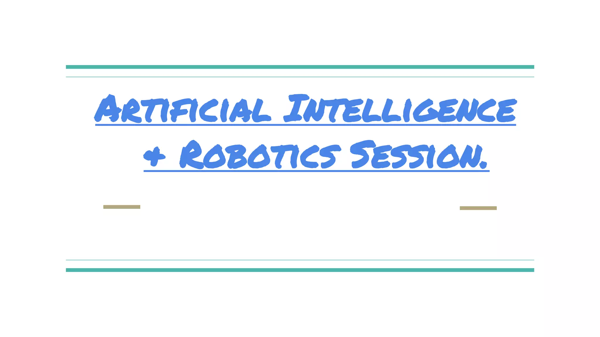 Artificial intelligence and robotics session. The document discusses the history and definitions of artificial intelligence, including that it is the ability of machines to improve performance without explicit human programming. It also discusses why AI is needed, such as to supplement human intelligence through robots. The main branches of AI are then summarized as artificial neural networks, machine learning, computer vision, and natural language processing. Examples of each area are provided.