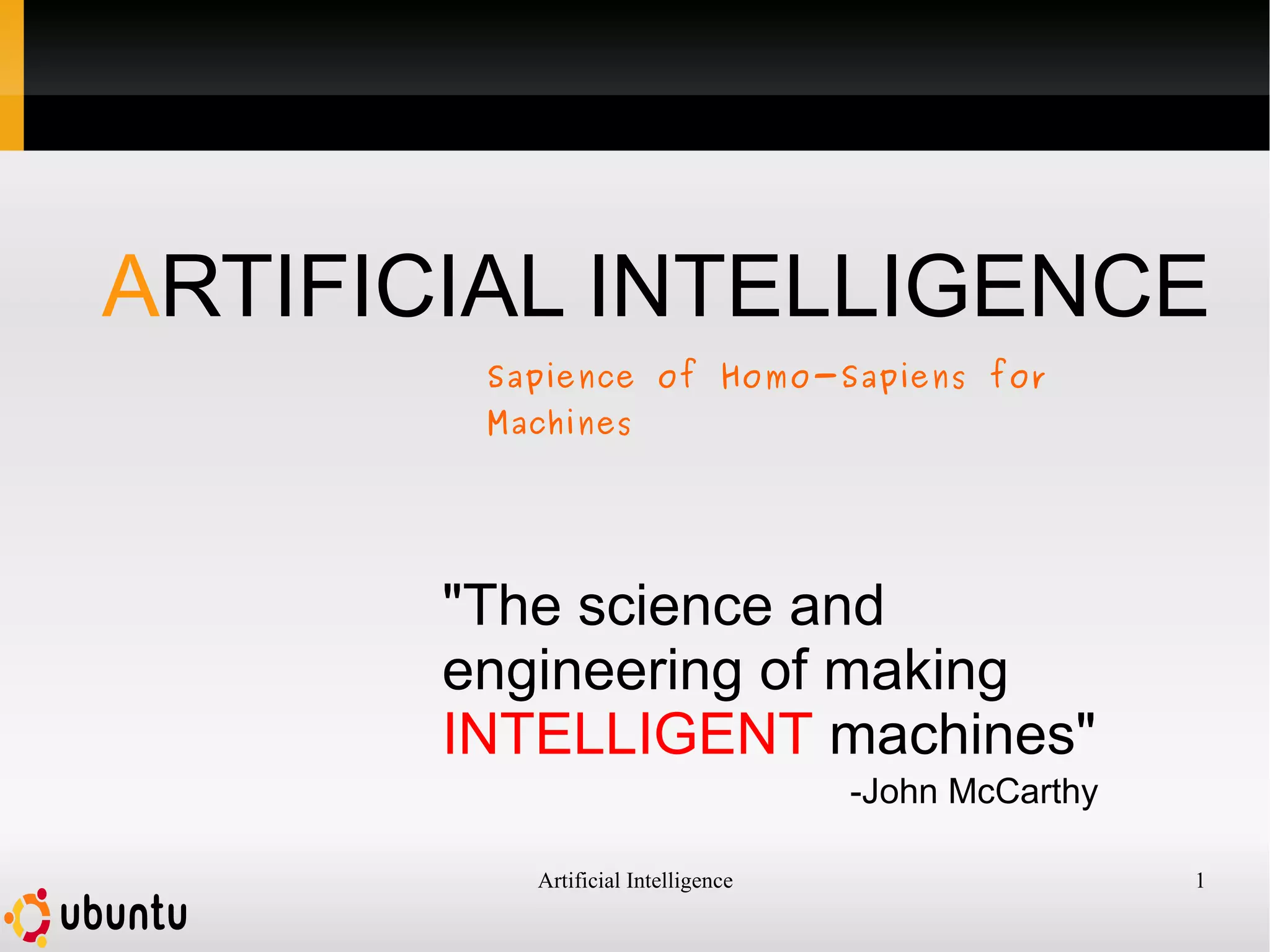 Artificial intelligence (AI) is the field of computer science focused on creating intelligent machines, rooted in early concepts from Greek mythology and formalized by Alan Turing in the mid-20th century. It encompasses various traits such as reasoning, learning, and natural language processing, and employs diverse approaches and tools across numerous applications, including medical diagnosis and video gaming. The document also highlights the societal implications and future predictions related to AI, making it a significant area of research and debate.