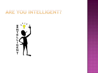 The document discusses intelligence and artificial intelligence. It defines intelligence as the ability to learn from and interact with one's environment through capacities like reasoning, judgment, and problem solving. Artificial intelligence is defined as making computers exhibit intelligent behavior normally associated with humans, like learning new concepts and drawing conclusions. The document also compares and contrasts human and artificial intelligence.