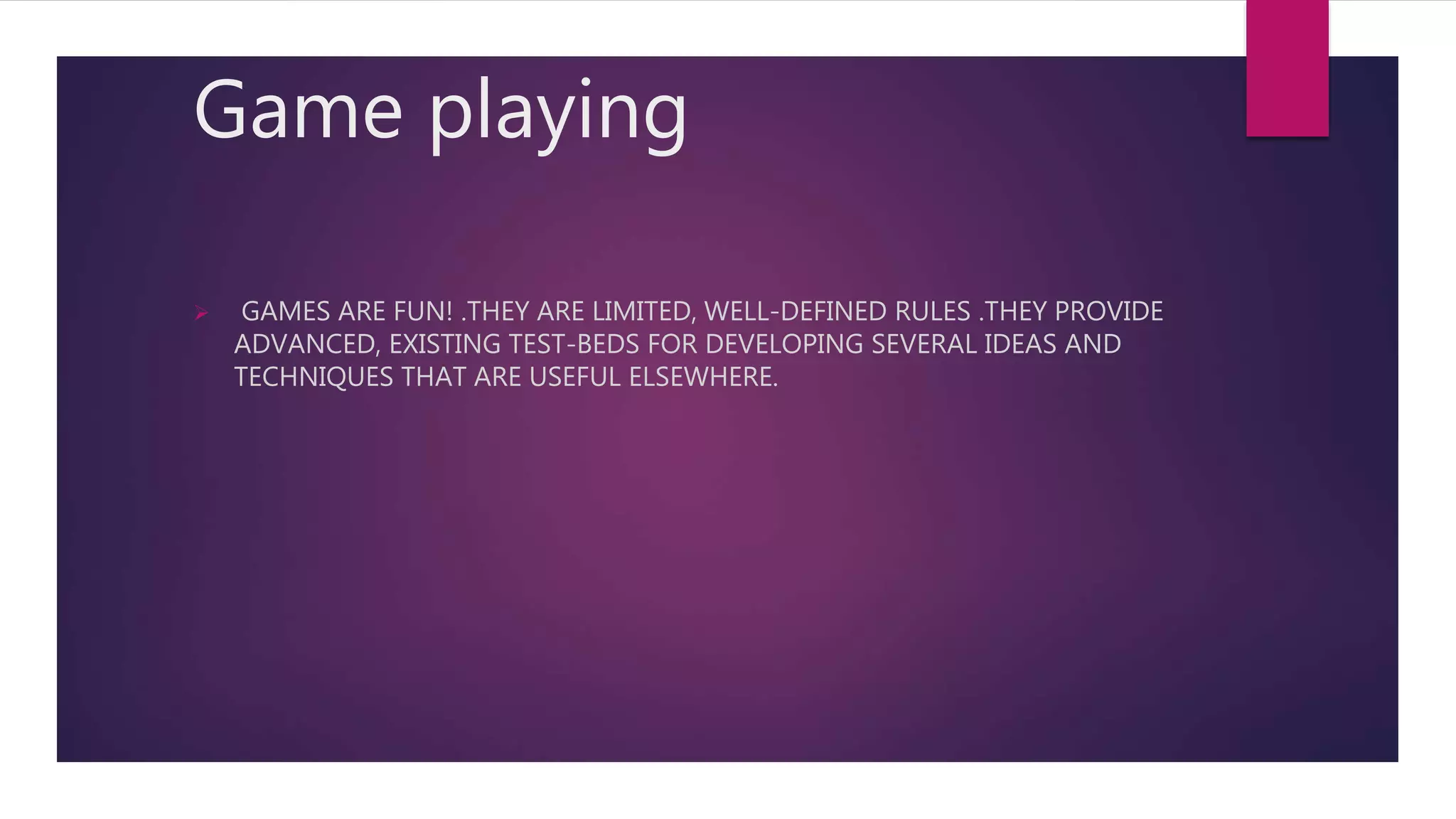 Game playing is one of the most studied areas of artificial intelligence. Game AI techniques produce intelligent behavior in video game characters. These techniques include pathfinding, decision making, planning, and developing agents that can match or exceed human performance. Game playing provides a test bed for AI ideas because games have well-defined rules and provide challenges in developing rational agents.