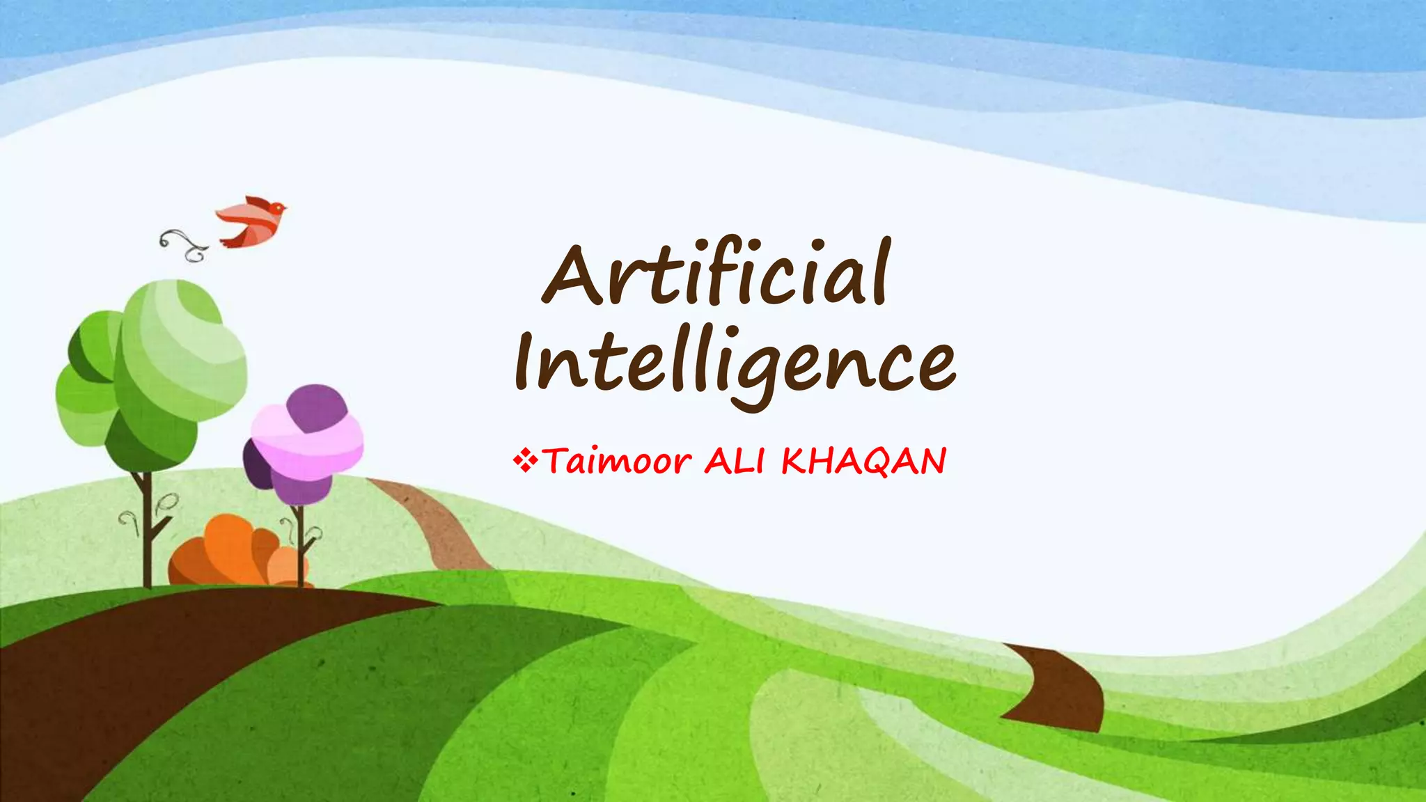Artificial intelligence is the science and engineering of creating intelligent machines that can perform tasks normally requiring human intelligence. The history of AI began in 1943 and has progressed through major developments in computational power and algorithms. Today, AI is applied in many areas including natural language processing, gaming, robotics, music, business, science, and the military. While AI has advantages like speed and ability to handle complex tasks, it also faces limitations and risks that researchers continue working to address.