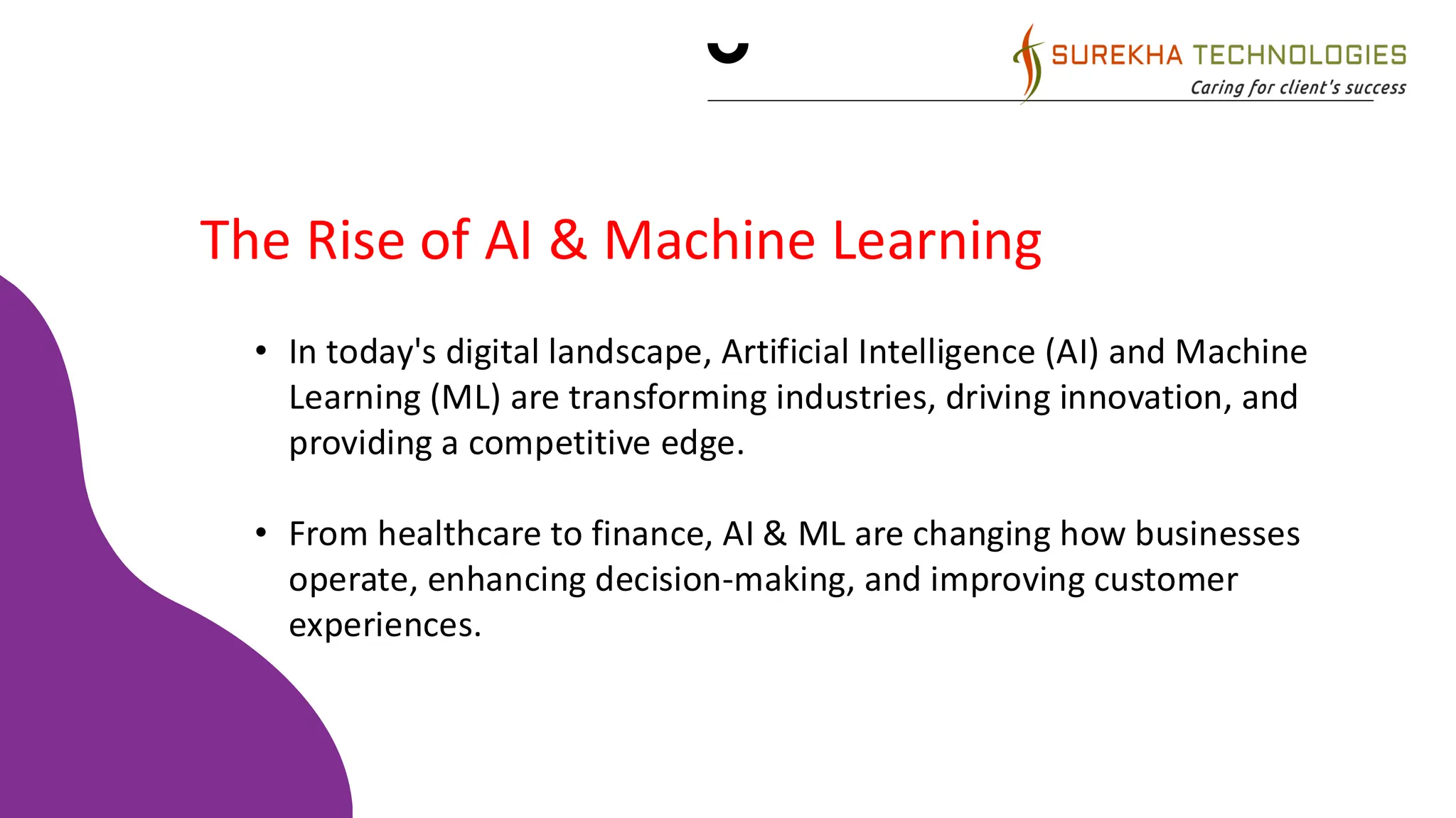 The document discusses the transformative impact of artificial intelligence (AI) and machine learning (ML) across various industries, emphasizing their role in enhancing decision-making and customer experiences. It outlines the services offered in AI and ML development, including consultation, custom solutions, integration, and ongoing support. Additionally, it provides an overview of market analysis, financial stability, and future initiatives aimed at promoting innovation and collaboration in technology.