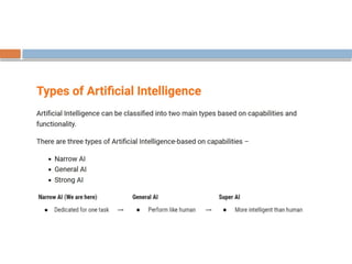 intelligence (AGI), which refers to AI systems that can understand, learn, and