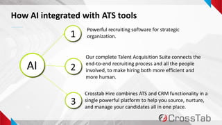 The document discusses the integration of artificial intelligence in recruitment processes, highlighting AI-powered Applicant Tracking Systems (ATS) and chatbots to enhance efficiency and candidate engagement. It presents case studies demonstrating significant improvements in hiring speed and quality, with features such as video interviews and automated candidate sourcing. Additionally, it emphasizes the importance of employee engagement and satisfaction in reducing turnover and optimizing HR functions.