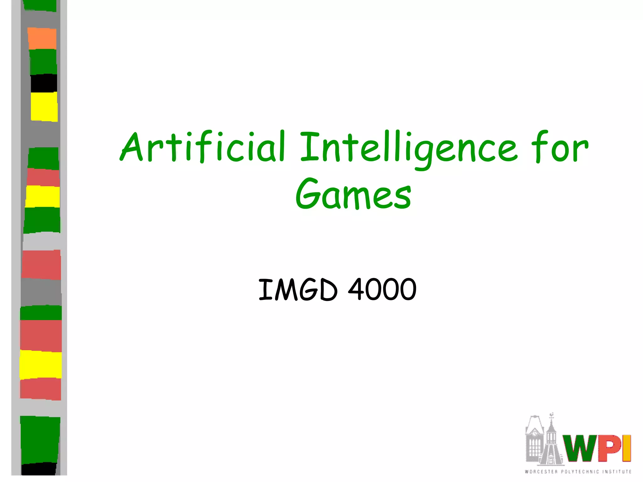 This document provides an introduction to using artificial intelligence for games. It discusses how AI can be used to create challenging opponents or helpful allies that act autonomously based on their programming. It notes that while human-level general intelligence is difficult to achieve, AI can perform well in narrow contexts like chess. For games, the AI must be intentionally flawed to ensure a fun challenge and cannot have obvious weaknesses. It must also be able to perform calculations and make decisions in real-time to interact with the game. The document then outlines some common AI techniques used in games, including MinMax search trees and finite state machines to control agent behavior. It provides pseudocode examples of the MinMax algorithm and discusses enhancements like Alpha-Beta pruning