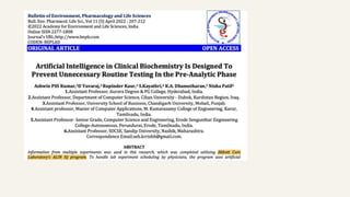 Dr. B. Krithika discusses the role of artificial intelligence in biochemistry, emphasizing its potential to enhance research through methods like neural networking and predictive analysis. The presentation contrasts AI with traditional automation, highlighting the need for human involvement in interpreting complex data that machines cannot fully understand. Ultimately, it underlines the importance of subject matter expertise and data in successfully integrating AI into biochemical research.