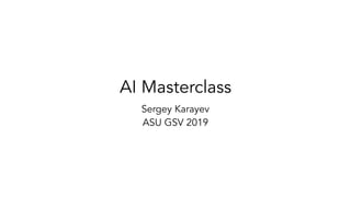The AI masterclass by Sergey Karayev at ASU GSV 2019 covers the history, terminology, and future possibilities of artificial intelligence, focusing on AI product development. Key topics include types of learning problems, the evolution of AI technology, and the challenges in developing AI products, particularly around data and accuracy. The presentation also emphasizes the importance of a data flywheel model for effective AI implementation and highlights the critical roles needed for success in AI projects.