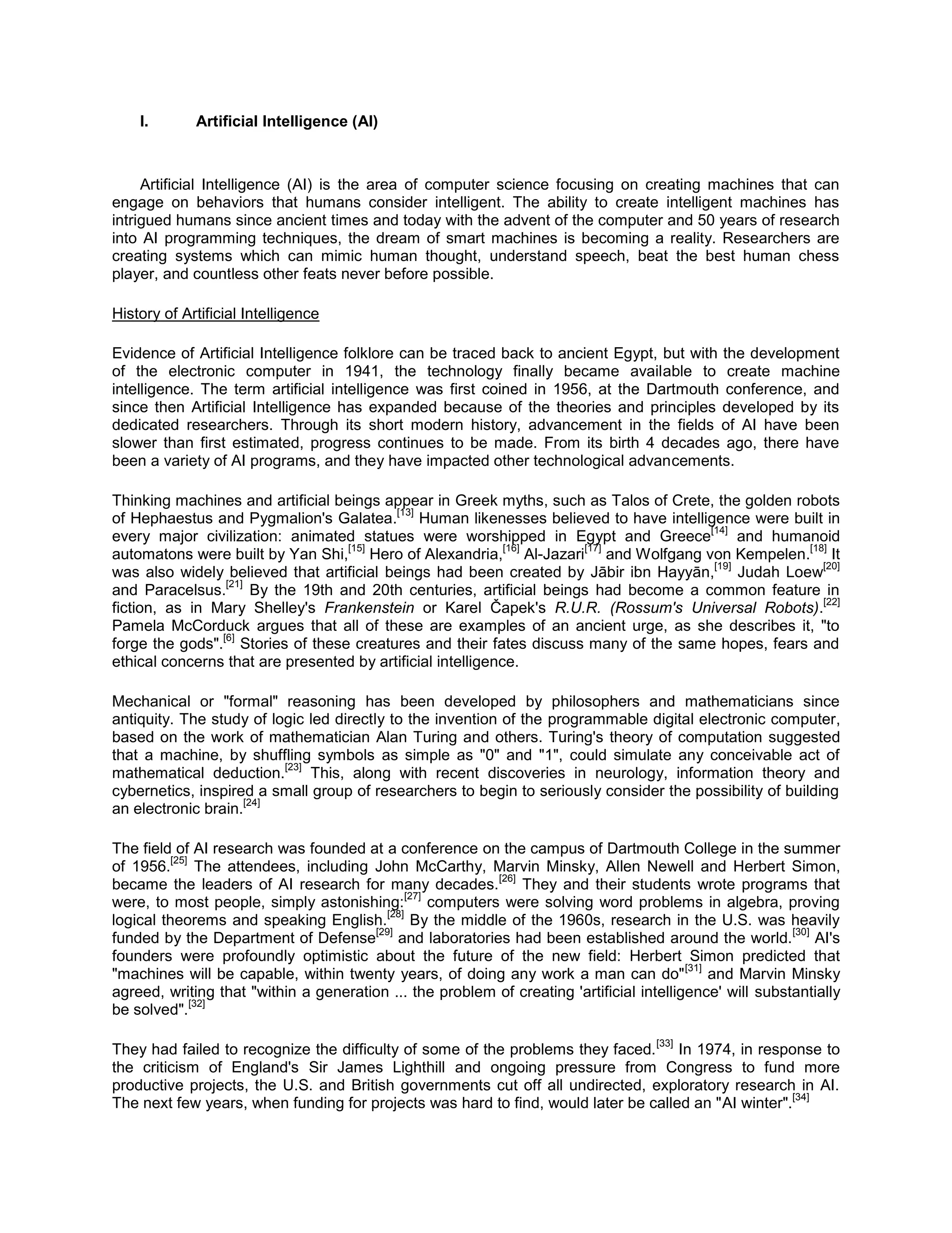 Artificial intelligence (AI) is the field of computer science focusing on creating intelligent machines. Researchers are developing systems that can understand speech, beat humans at chess, and perform other intelligent tasks. The term was first coined in 1956, and since then AI has made advances in areas like machine learning, natural language processing, and robotics. However, fully human-level AI remains an ongoing challenge. Researchers take different approaches to developing AI, such as attempting to replicate the human brain through neural networks, or developing intelligent programs through symbolic reasoning.