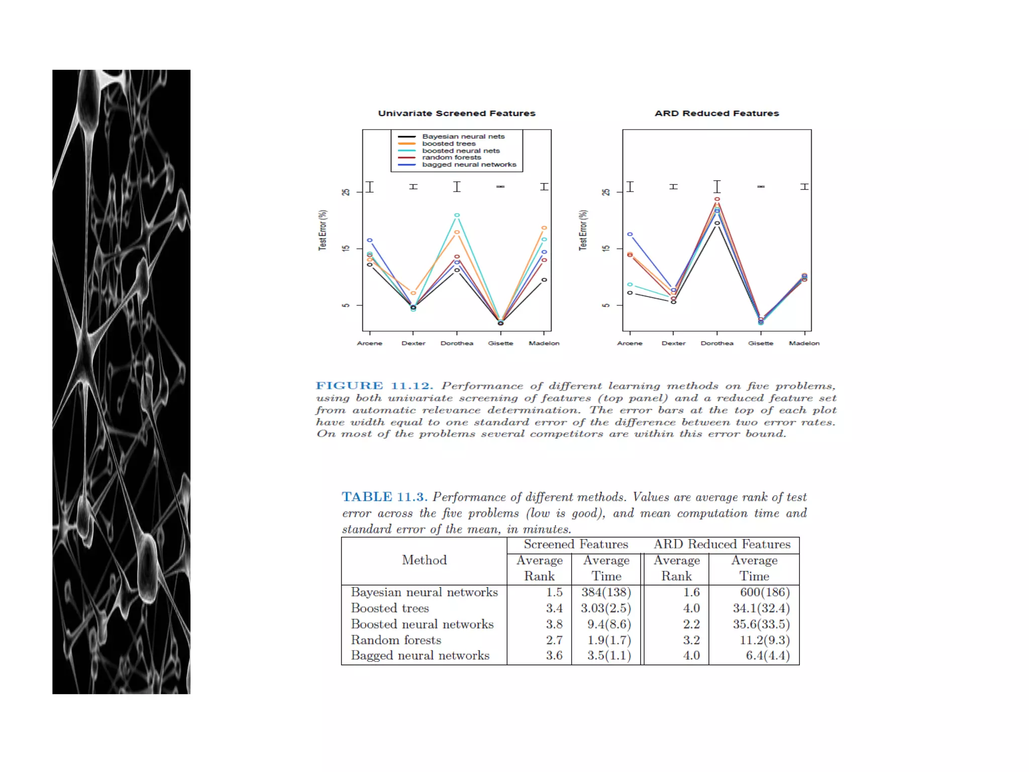 Neural networks are modeled after the human brain and consist of interconnected nodes that process information using activation functions. They can be trained to recognize patterns in data and make predictions. The network is initialized with random weights and biases then trained via backpropagation to minimize an error function by adjusting the weights. Issues that can arise include overfitting, choosing the number of hidden layers and units, and multiple local minima. Bayesian neural networks place prior distributions over the weights to better model uncertainty. Ensemble methods like bagging and boosting can improve performance.