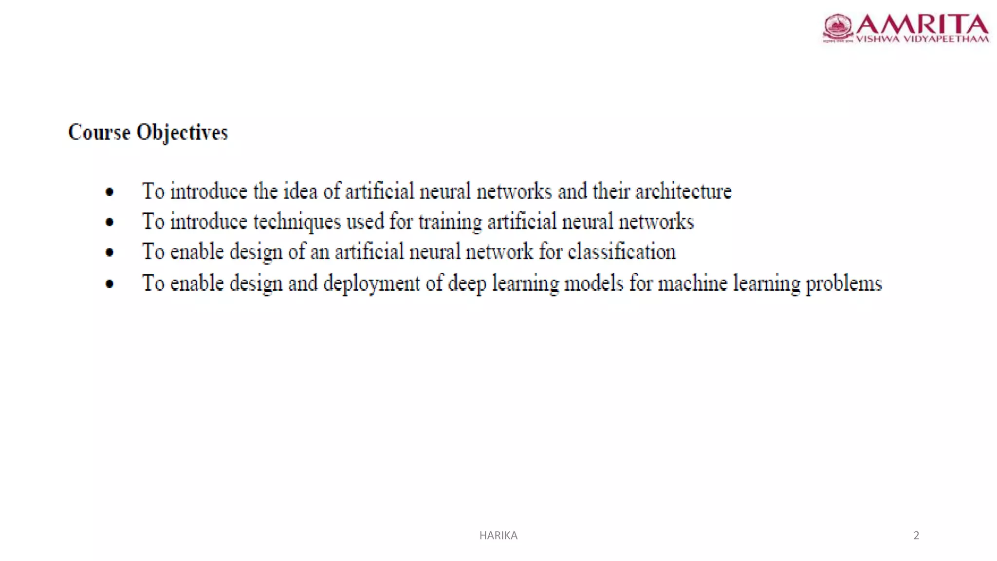 2) An overview of topics to be covered including neural networks, neuron types, and feedforward networks.