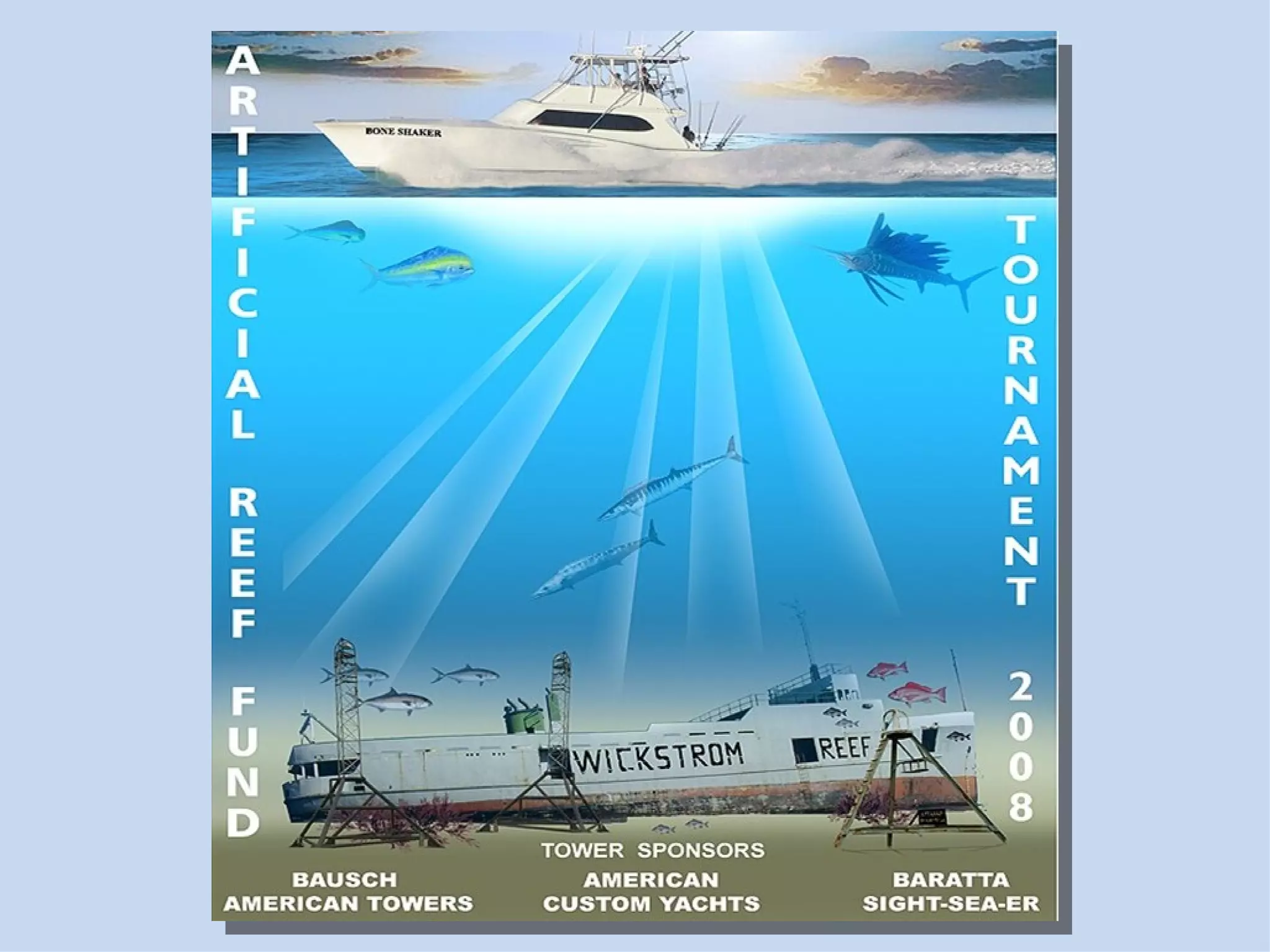 The document outlines Martin County's artificial reef program aimed at enhancing recreational fishing, the environment, and tourism through suitable vessel donations for reef creation. Fundraising efforts include an annual fishing tournament and naming rights sales for artificial reefs, with collected funds supporting various reef-related activities. Upcoming projects include deploying a tugboat named 'Big Al' to expand the reef system.