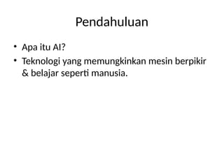 • •Narrow AI (AI khusus, contoh: Siri, Google