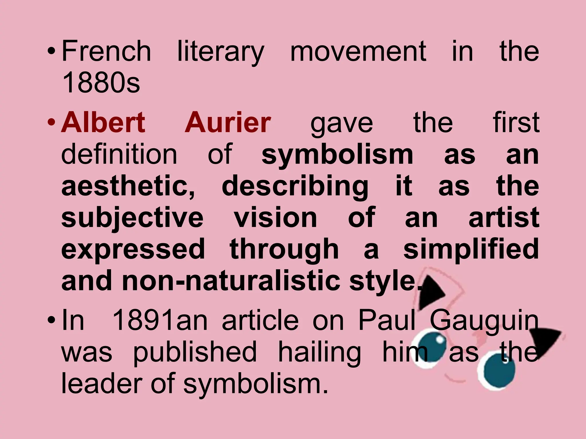 Symbolism was a French literary movement in the 1880s that focused on subjective and simplified artistic visions. It produced dream-like worlds populated with mythological figures and creatures to symbolize universal human emotions like love, fear, anguish, and death. Woman often represented these emotions, appearing as virgins or femme fatales. Prominent Symbolist artists included Edvard Munch, Ferdinand Hodler, Fernand Khnopff, and Gustav Klimt, who created works depicting themes of the unconscious and featuring symbolic figures.