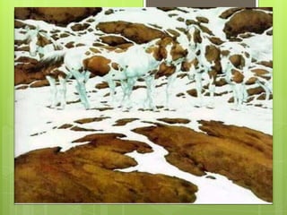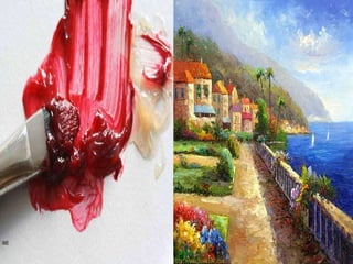 This document provides an overview of modern and contemporary art eras. It discusses how modern art moved away from traditional elements and ornaments, and focused more on method and depicting psychological states. Three types of modern artists are identified: sensationalists, experimentalists, and those who combine both approaches. The document also defines key art terms like composition, process, medium, technique, and assemblage. It concludes that modern artists had more freedom in subject and medium choice, requiring new ways of understanding from viewers.