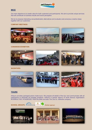 Arttours is a travel agency founded in 1986 in Turkey that specializes in MICE (meetings, incentives, conferences and events), tours, and travel services. Over the past 30 years, Arttours has worked with many large corporate clients and provided services such as meetings, congresses, incentive trips, school trips, ski tours, ticketing, hotel reservations, transfers, and visas. Arttours aims to understand customer needs, create high quality customized solutions, and provide excellent customer service beyond expectations.