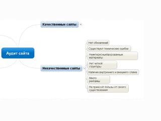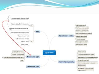 Документ представляет собой технический аудит сайта, включающий выявление проблем с индексированием, проверку уникальности контента и наличие необходимых файлов, таких как robots.txt и sitemap.xml. Также рассматриваются методы оптимизации внутренней структуры сайта и важность внешних ссылок для улучшения ранжирования. В заключение упоминается о предстоящем SEO-коучинге с подробностями о программе и стоимости участия.