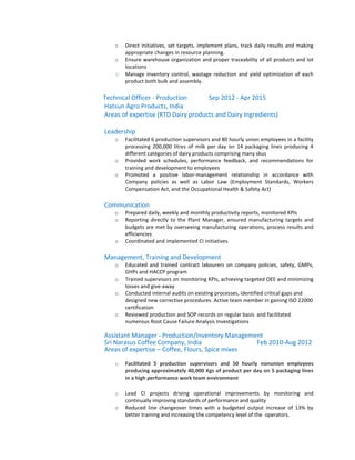 Arun Vickram is a food professional with over 5 years of experience in production and inventory management roles. He has a Master's degree in Business Administration and Food Science and Technology. His experience includes leading production teams, improving productivity, reducing costs and defects, and ensuring compliance with food safety standards. He is seeking a management role in food manufacturing and is proficient in various computer skills.